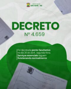 A Prefeitura de São Sepé informa que o prefeito municipal decretou ponto facultativo no dia 20.