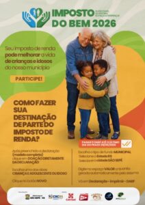 A Campanha Imposto do Bem mobiliza a comunidade para a destinação de parte do Imposto de Renda aos Fundos da Criança e do Adolescente e da Pessoa Idosa do município, fortalecendo ações voltadas a esses públicos.